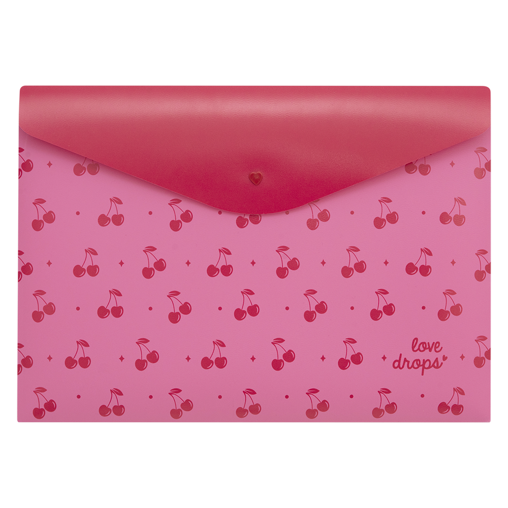 A Pasta Envelope Love Drops combina praticidade e estilo para deixar seus documentos, trabalhos e papeis sempre protegidos e bem guardados. Com estampa delicada de cerejas e acabamento impecavel, ela e perfeita para quem ama papelaria com personalidade.